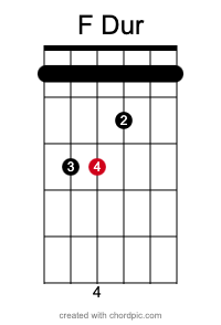 - Starte mit F‑Dur (1. Bund) – schwer, aber ein Klassiker.