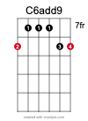 *** Gut zu wissen: Die von mir ausgesuchten Akkorde dieser Variante sind nur eine mögliche Auswahl. Die mit „rot“ gekennzeichneten Punkte sollen zeigen, wo sich der Grundton eines Akkordes in dieser Lage befindet. Wo die „rote“ Farbe fehlt, wird im Akkord auf den Grundton verzichtet.